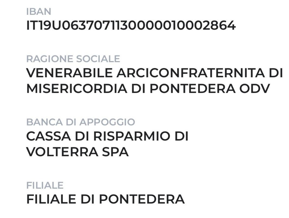 1 – l’invio di un bonifico bancario sul conto corrente della Misericordia di Pontedera