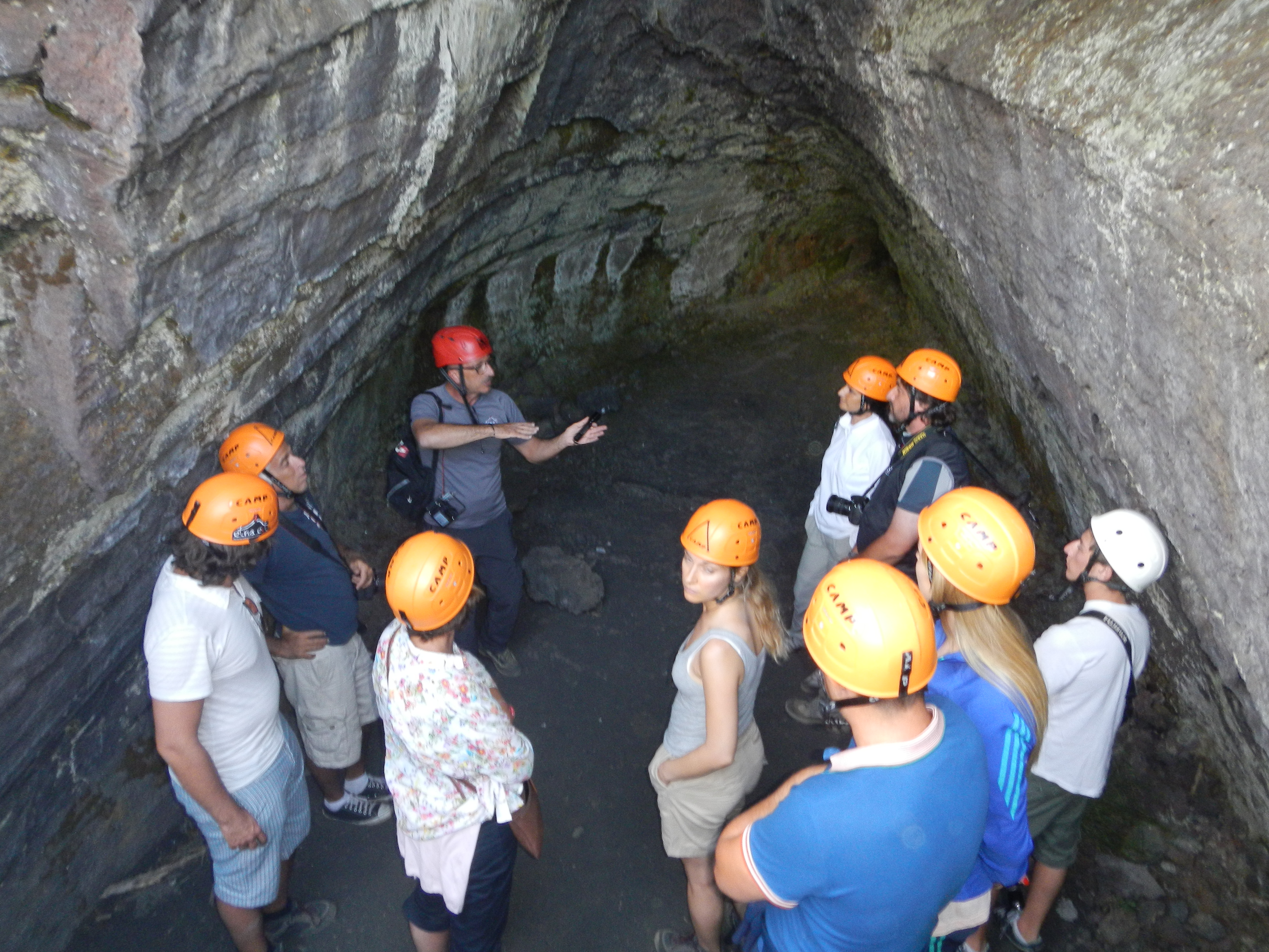 - Inizieremo con l’esplorazione di un’antica grotta di scorrimento lavico: muniti di casco e torcia, ci addentreremo nell’affascinate cavità sotterranea per scoprirne tutti gli aspetti geologici;